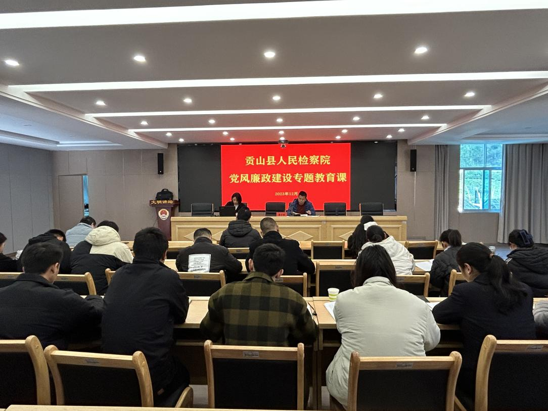 为深入学习贯彻习近平新时代中国特色社会主义思想,进一步增强深化全面从严治党的政治定力,以永远在路上的坚忍执着正风肃纪反腐,为检察工作高质量发展提供坚强政治保证,2023年12月12日下午,贡山县人民检察院党组成员、派驻纪检监察组组长张红英为全院干警上了一堂党风廉政建设教育课,全体干警及聘用制书记员参会,会议由党组书记、检察长潘少林主持。